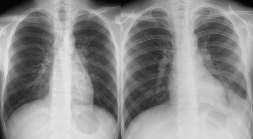 粒状影・微小結節・小結節・大結節・腫瘤影 肺胞性・間質性のパタ-ン分類と考えられる疾患(表1) [間質性陰影と肺胞性陰影の実際] [参考]すりガラス様陰影のCTによる鑑別、単純写真を読むための参考になります。 [すりガラス様陰影の実際] [参考]乳房陰影(左)とすりガラス様陰影(右) 胸部X線写真の表現用語集 孤立性異常影の知識